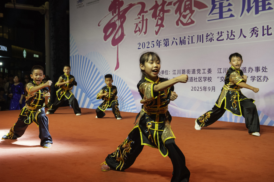 在夜晚的街头,沪剧、滑稽戏等深受人民喜爱的传统艺术轮番登场,百老汇音乐剧、爵士乐队、街舞表演激情上演。同时,还有江川社区达人秀、上海航天设备制造总厂、上海三菱电梯、闵行开发区、上海交通大学、华东师范大学音乐学院、上海电机学院、闵行三中等共建单位分别带来富有创意的歌舞表演,展现区域文化共建共享的蓬勃生机。