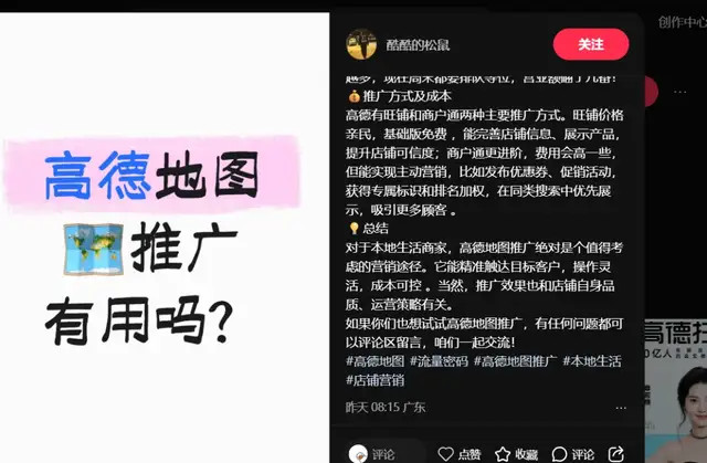 抖音用户小C智圈小板凳发表视频表示:自己在高速上用高德导航,在一个陌生路段找转弯路口时,高德突然插播其他餐饮商家的语音广告,声音非常大,导致自己听不清导航播报开过头。