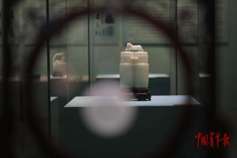 11月2日,北京,中国非物质文化遗产馆,“万方乐奏有于阗 ——新疆和田地区非物质文化遗产展”现场,来自和田的玉器展品。中青报·中青网记者 孔斯琪/摄